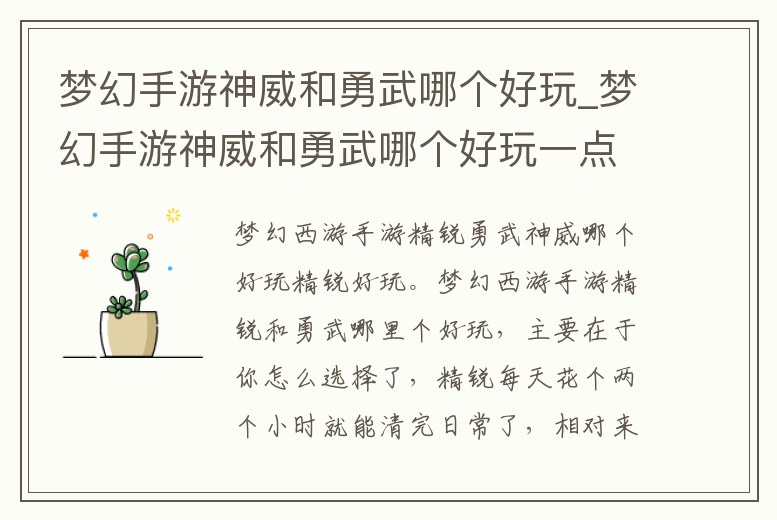 夢幻手游神威和勇武哪個好玩_夢幻手游神威和勇武哪個好玩一點