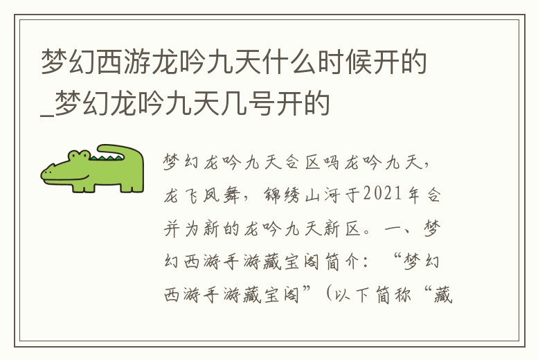 夢幻西游龍吟九天什么時候開的_夢幻龍吟九天幾號開的