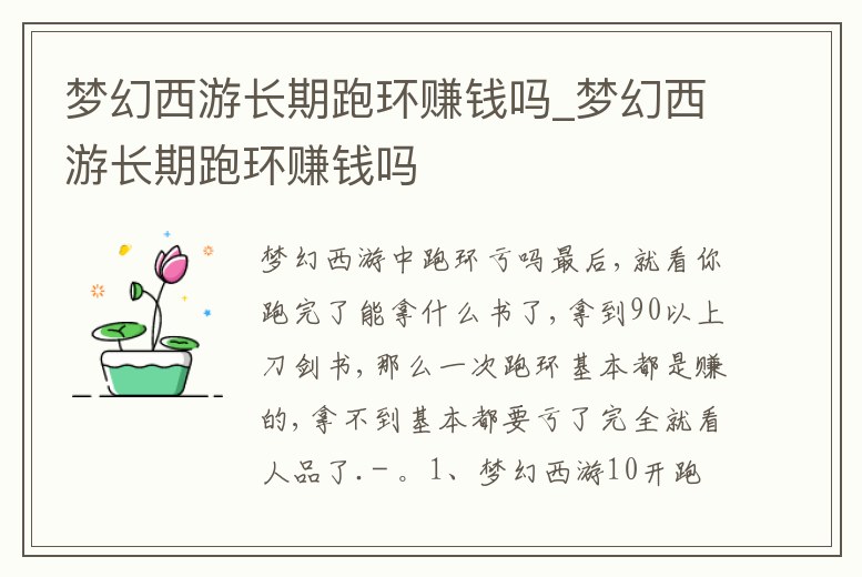 夢(mèng)幻西游長期跑環(huán)賺錢嗎_夢(mèng)幻西游長期跑環(huán)賺錢嗎