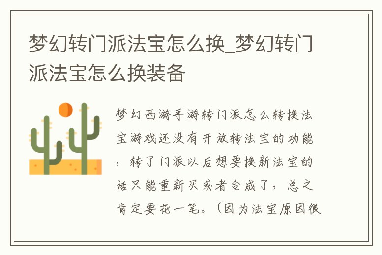 夢幻轉門派法寶怎么換_夢幻轉門派法寶怎么換裝備