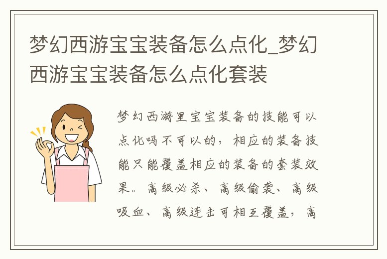 夢幻西游寶寶裝備怎么點化_夢幻西游寶寶裝備怎么點化套裝