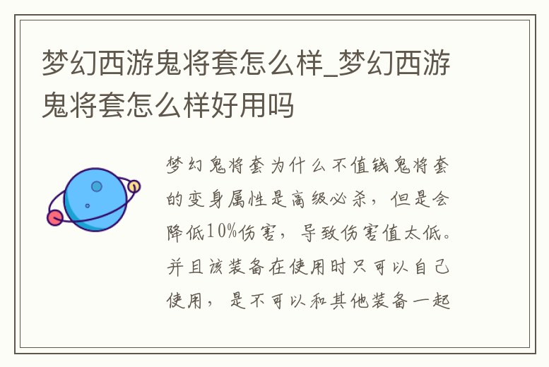 夢幻西游鬼將套怎么樣_夢幻西游鬼將套怎么樣好用嗎