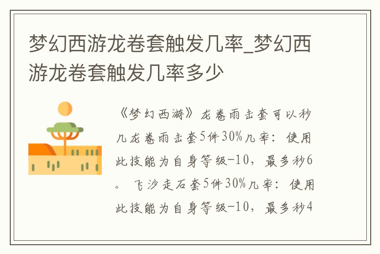 - 夢(mèng)幻西游龍卷套觸發(fā)幾率_夢(mèng)幻西游龍卷套觸發(fā)幾率多少