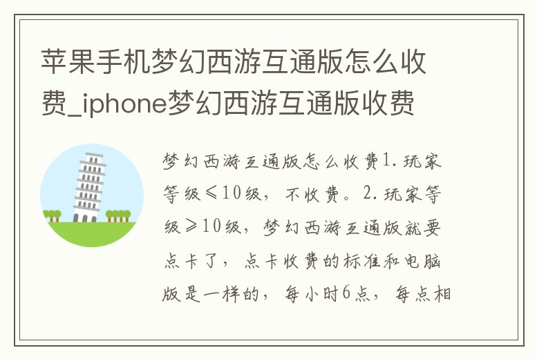 蘋(píng)果手機(jī)夢(mèng)幻西游互通版怎么收費(fèi)_iphone夢(mèng)幻西游互通版收費(fèi)