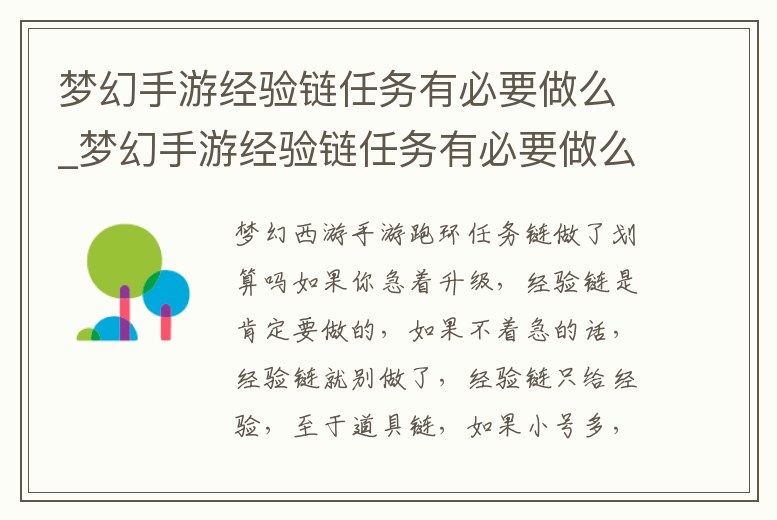 - 夢(mèng)幻手游經(jīng)驗(yàn)鏈任務(wù)有必要做么_夢(mèng)幻手游經(jīng)驗(yàn)鏈任務(wù)有必要做么嗎