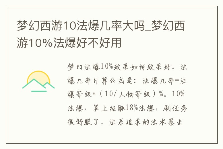 夢幻西游10法爆幾率大嗎_夢幻西游10%法爆好不好用