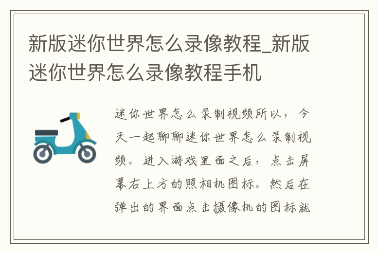 新版迷你世界怎么錄像教程_新版迷你世界怎么錄像教程手機