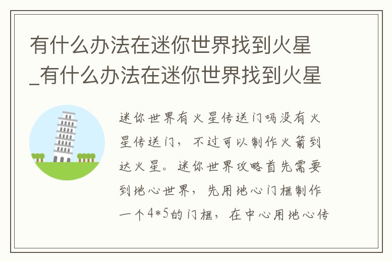 有什么辦法在迷你世界找到火星_有什么辦法在迷你世界找到火星的位置