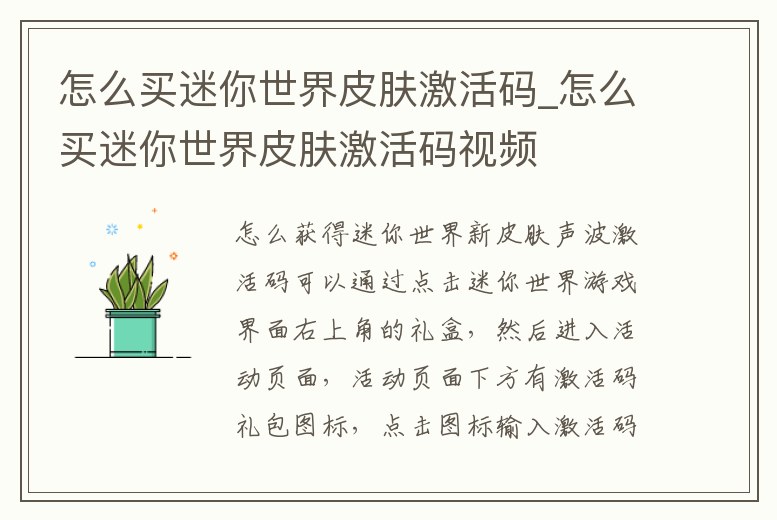 怎么獲得迷你世界激活碼皮膚_怎么獲得迷你世界激活碼皮膚視頻