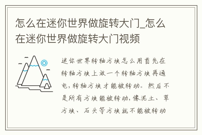 怎么在迷你世界做旋轉大門_怎么在迷你世界做旋轉大門視頻