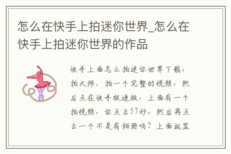 怎么在快手上拍迷你世界_怎么在快手上拍迷你世界的作品