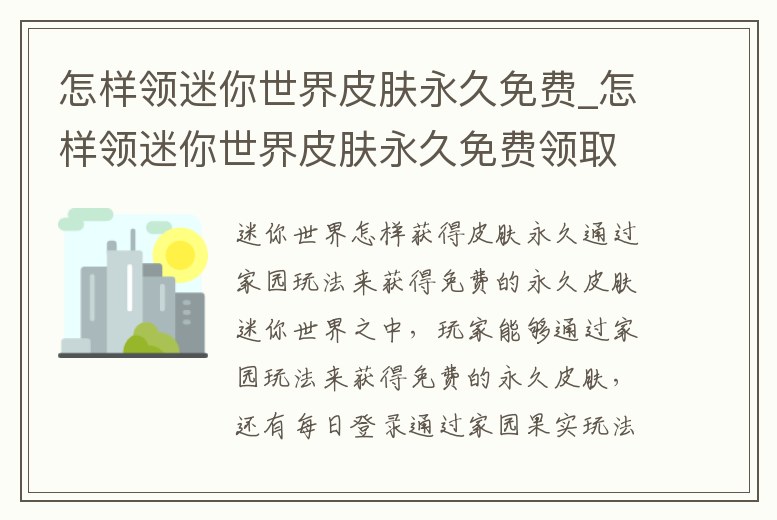 怎樣領(lǐng)迷你世界皮膚永久免費(fèi)_怎樣領(lǐng)迷你世界皮膚永久免費(fèi)領(lǐng)取