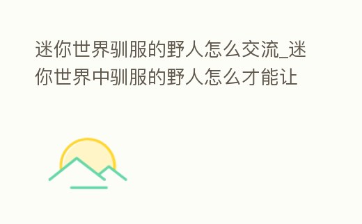 迷你世界馴服的野人怎么交流_迷你世界中馴服的野人怎么才能讓他培我們玩