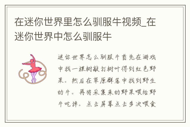 在迷你世界里怎么馴服牛視頻_在迷你世界中怎么馴服牛