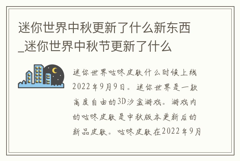迷你世界中秋更新了什么新東西_迷你世界中秋節(jié)更新了什么