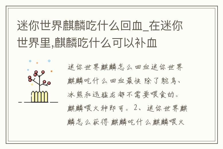迷你世界麒麟吃什么回血_在迷你世界里,麒麟吃什么可以補(bǔ)血