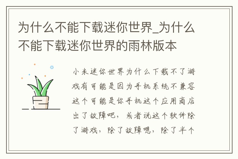為什么不能下載迷你世界_為什么不能下載迷你世界的雨林版本