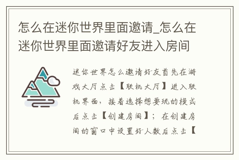 怎么在迷你世界里面邀請_怎么在迷你世界里面邀請好友進入房間