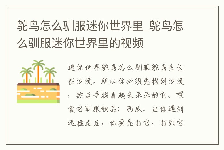 鴕鳥怎么馴服迷你世界里_鴕鳥怎么馴服迷你世界里的視頻
