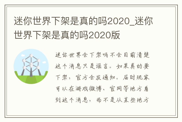 迷你世界下架是真的嗎2020_迷你世界下架是真的嗎2020版