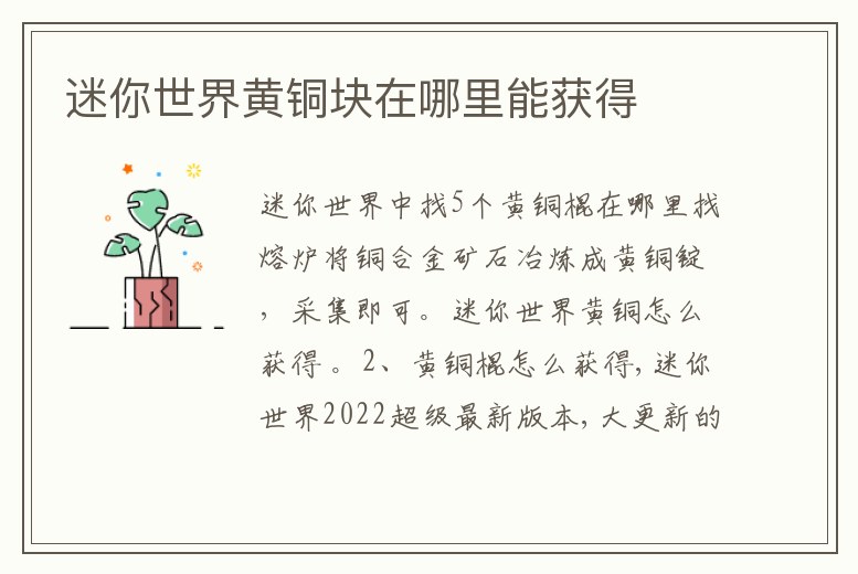 熔爐將銅合金礦石冶煉成黃銅錠,采集即可。迷你世界黃銅怎么獲得 。