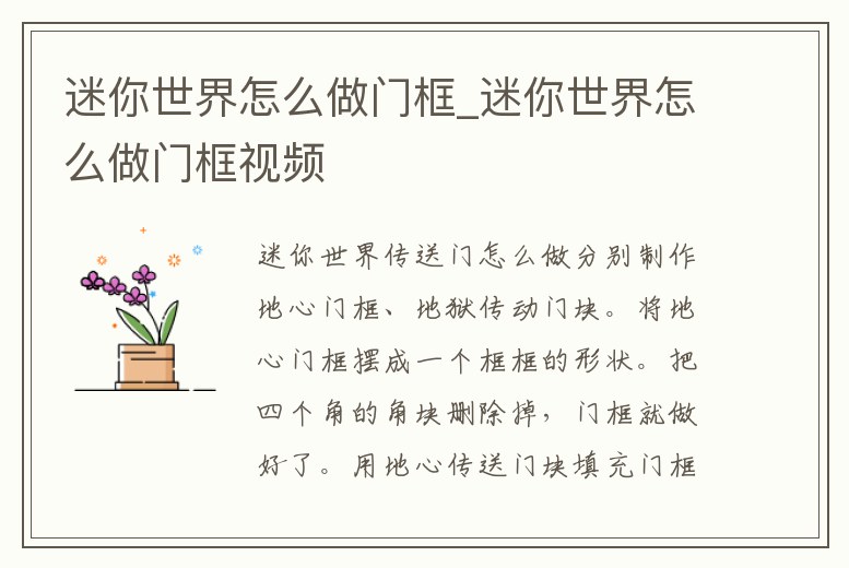 迷你世界怎么做門框_迷你世界怎么做門框視頻