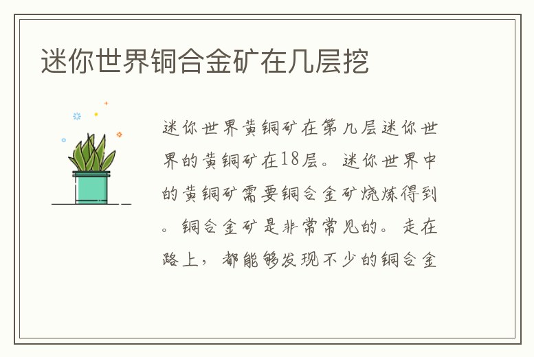 迷你世界的黃銅礦在18層。迷你世界中的黃銅礦需要銅合金礦燒煉得到。銅合金礦是非常常見的。走在路上,都能夠發現不少的銅合金礦石。全新的礦石系統,挖到礦石之后,需要燒煉。在燒煉的過程里面,不同的溫度,會獲得不同。