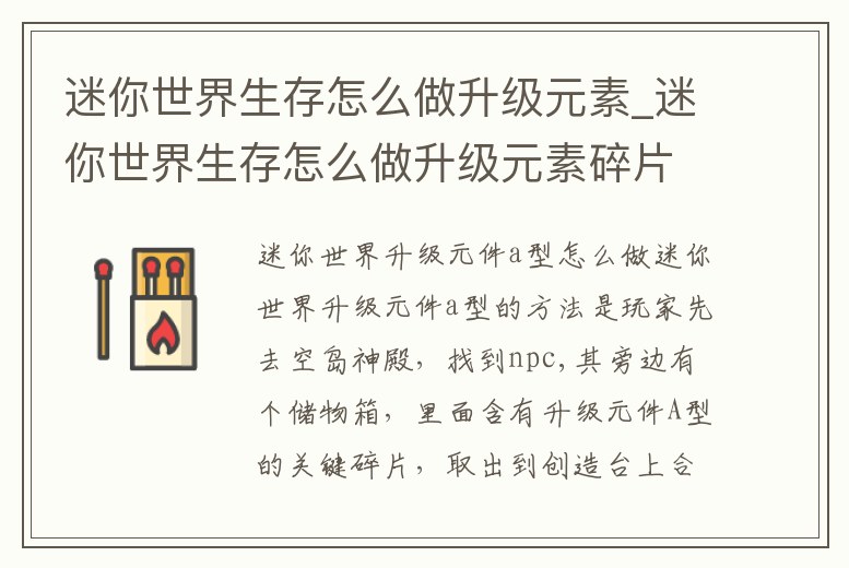 迷你世界生存怎么做升級元素_迷你世界生存怎么做升級元素碎片