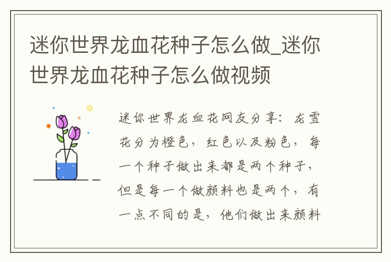迷你世界龍血花種子怎么做_迷你世界龍血花種子怎么做視頻
