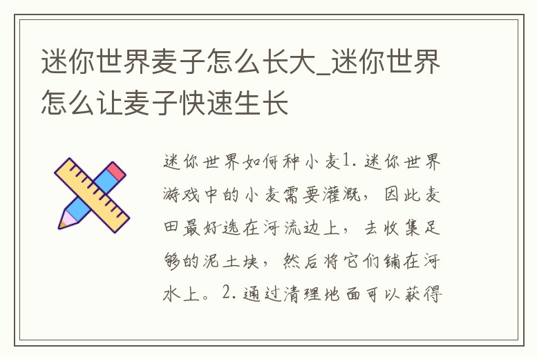 - 迷你世界麥子怎么長(zhǎng)大_迷你世界怎么讓麥子快速生長(zhǎng)