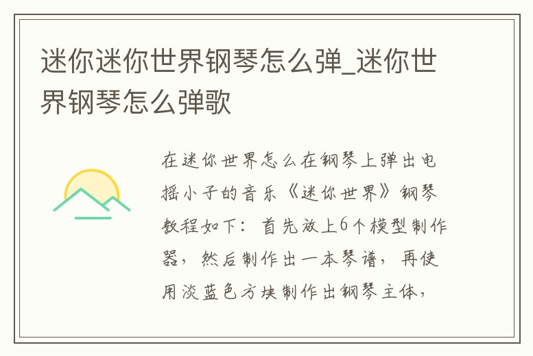 迷你迷你世界鋼琴怎么彈_迷你世界鋼琴怎么彈歌