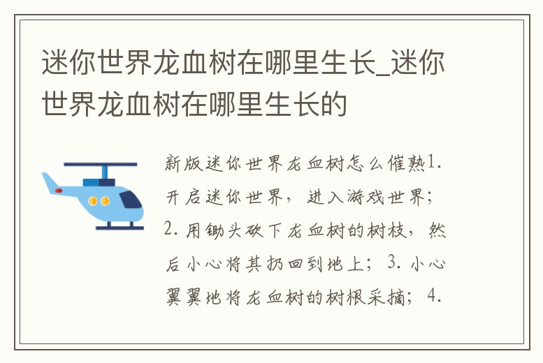 迷你世界龍血樹在哪里生長_迷你世界龍血樹在哪里生長的