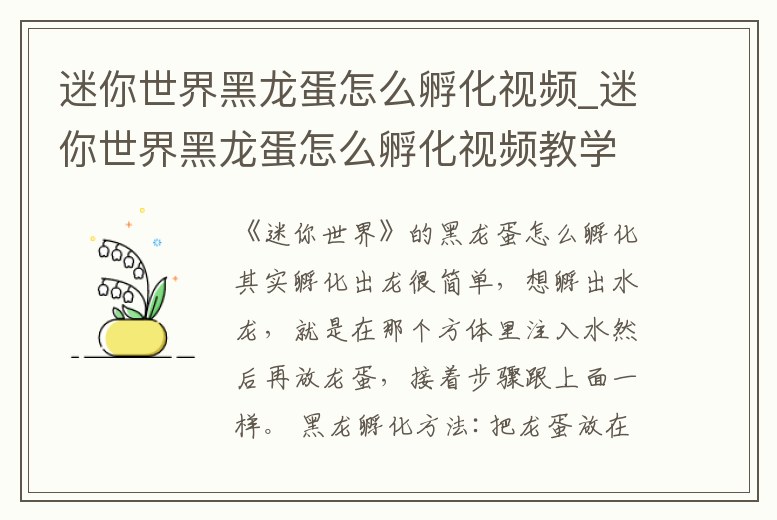 迷你世界黑龍蛋怎么孵化視頻_迷你世界黑龍蛋怎么孵化視頻教學