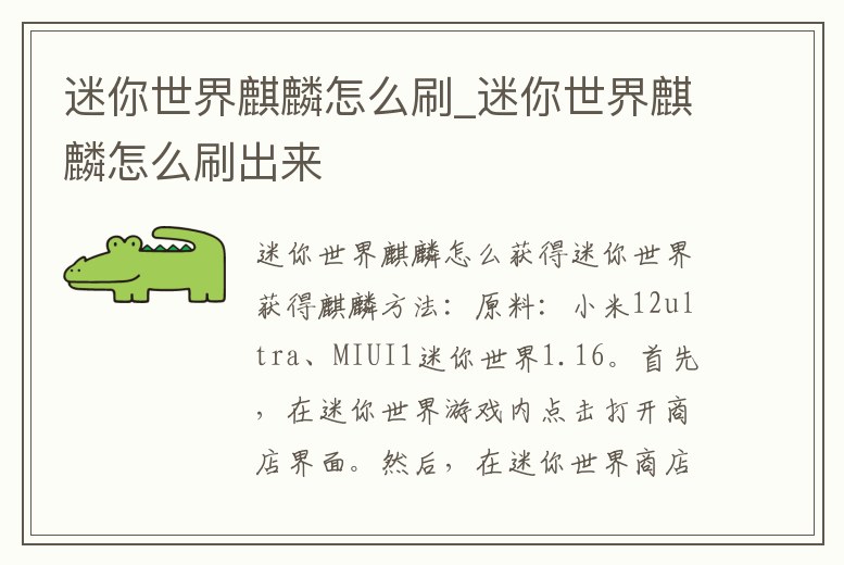 迷你世界麒麟怎么刷_迷你世界麒麟怎么刷出來