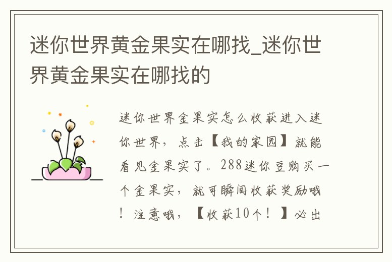 迷你世界黃金果實在哪找_迷你世界黃金果實在哪找的