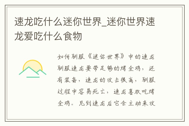 速龍吃什么迷你世界_迷你世界速龍愛吃什么食物