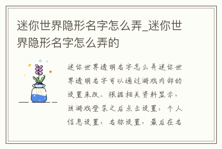 迷你世界隱形名字怎么弄_迷你世界隱形名字怎么弄的