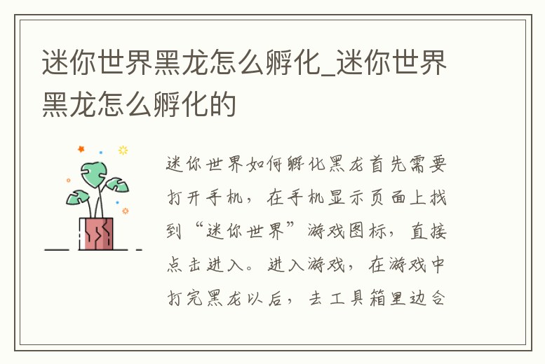 迷你世界黑龍怎么孵化_迷你世界黑龍怎么孵化的