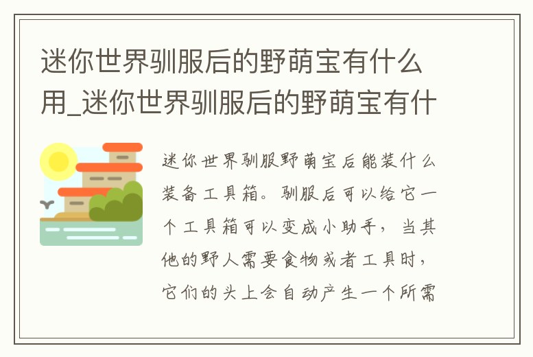 工具箱。馴服后可以給它一個工具箱可以變成小助手,當其他的野人需要食物或者工具時,它們的頭上會自動產生一個所需的標志,野萌寶便會去為它們提供所需。迷你世界手游是一款超好玩的3D沙盒游戲。