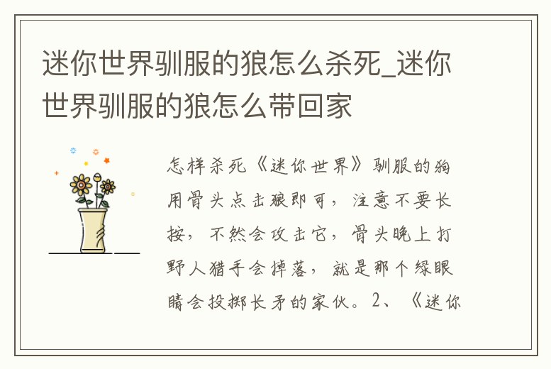 迷你世界馴服的狼怎么殺死_迷你世界馴服的狼怎么帶回家