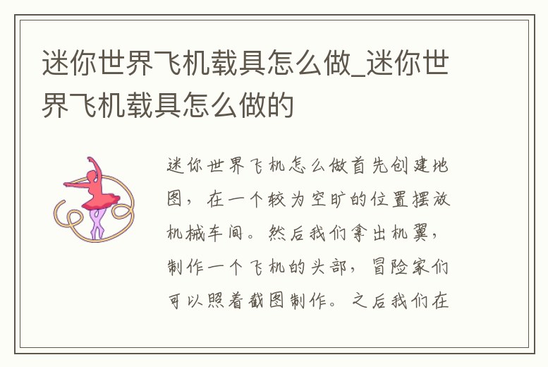 迷你世界飛機載具怎么做_迷你世界飛機載具怎么做的