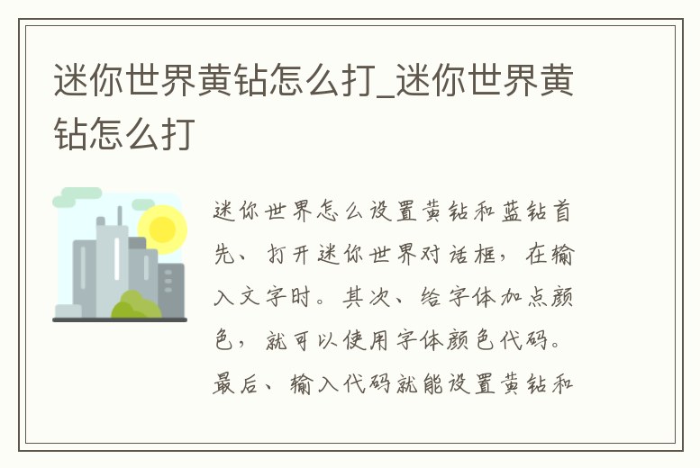 首先、打開迷你世界對話框,在輸入文字時。其次、給字體加點顏色,就可以使用字體顏色代碼。最后、輸入代碼就能設置黃鉆和藍鉆。