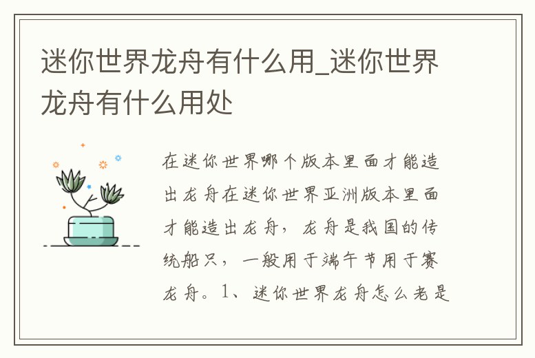 迷你世界龍舟有什么用_迷你世界龍舟有什么用處