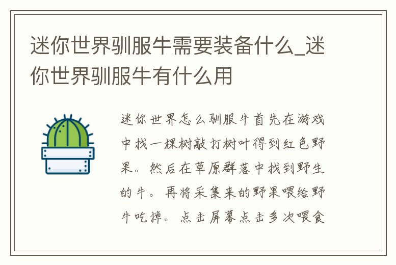 迷你世界馴服牛需要裝備什么_迷你世界馴服牛有什么用