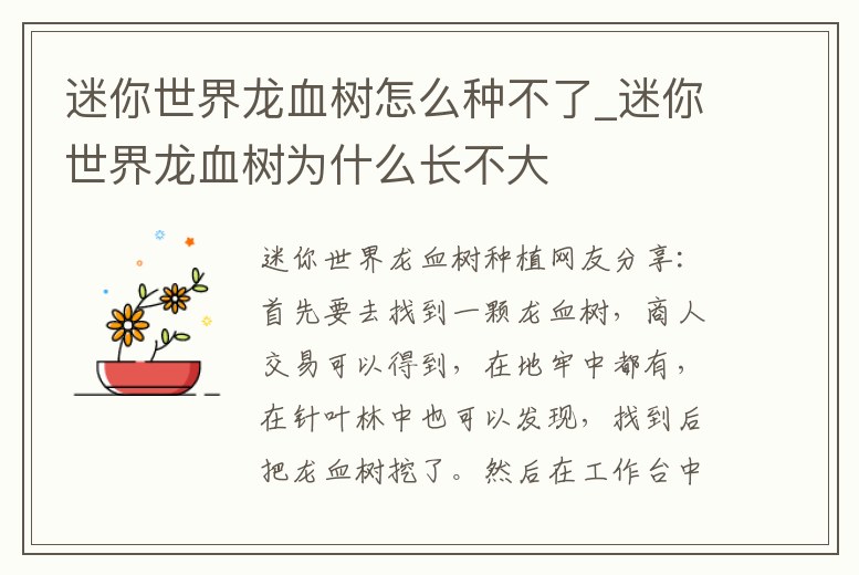 迷你世界龍血樹怎么種不了_迷你世界龍血樹為什么長不大