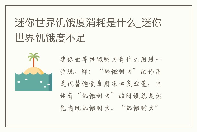 迷你世界饑餓度消耗是什么_迷你世界饑餓度不足