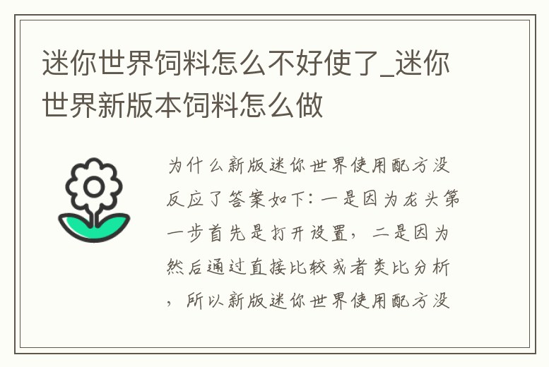 迷你世界飼料怎么不好使了_迷你世界新版本飼料怎么做