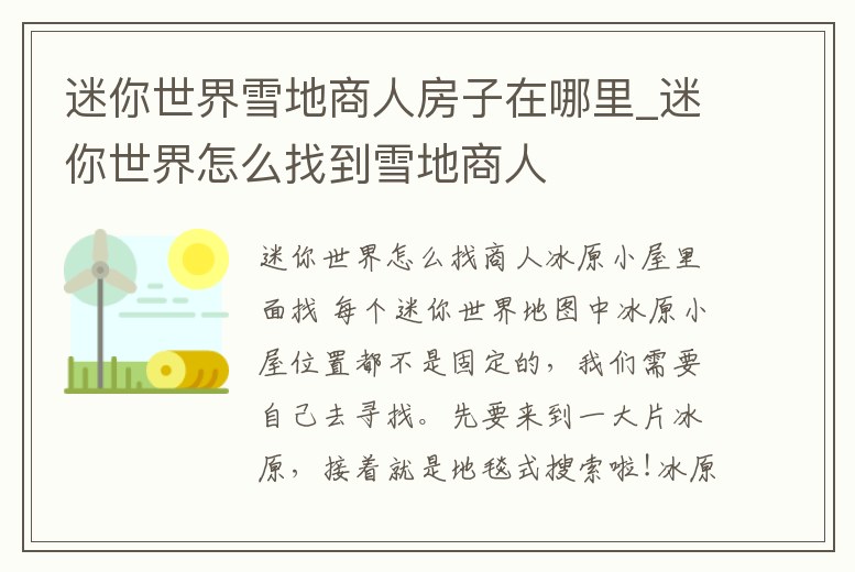 迷你世界雪地商人房子在哪里_迷你世界怎么找到雪地商人