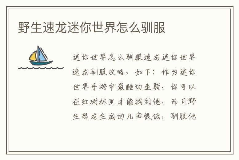 1、《迷你世界》中的野生速龍可以用什么來馴服