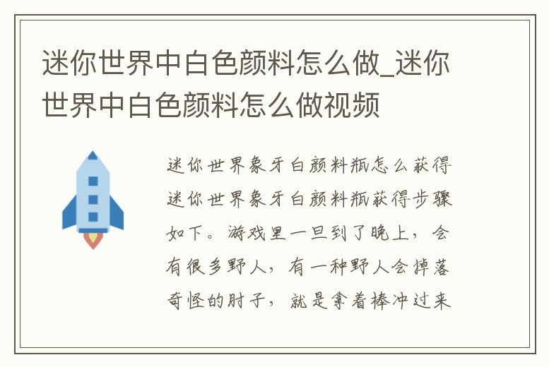 - 迷你世界中白色顏料怎么做_迷你世界中白色顏料怎么做視頻